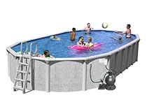 Enjoy the refreshment and fun of your very own swimming pool. This terrific above-ground pool by Splash Pools makes it simple with everything you need to set up your own backyard oasis of family enjoyment. This Pool Package comes with everything needed to get you swimming. It features strong painted hot-dipped galvanized steel components All-Weather 20 gauge Vinyl Liner that withstands everyday use all year round. A-Frame Resin ladder with safety barrier 1 HP Sand Filter with Standard Thru-the-Wall Skimmer and lifetime customer support.